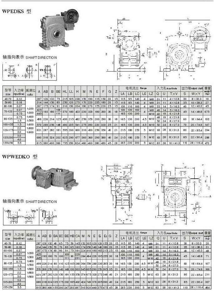 WPWDKS,WPWEDKO型型號參數圖表