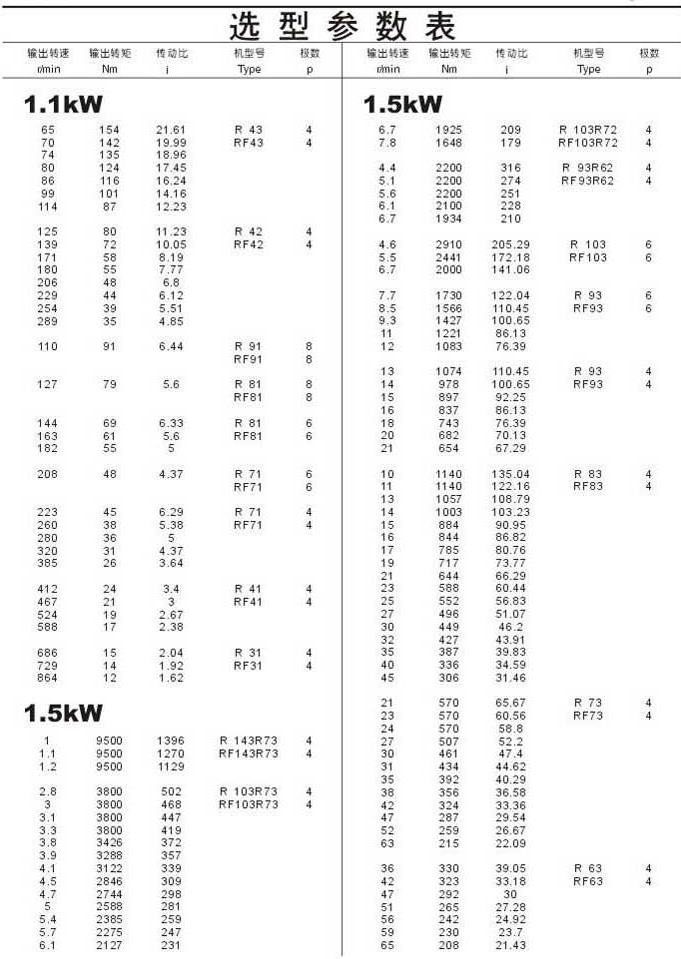 選型參數表1.1kW(續),1.5kW